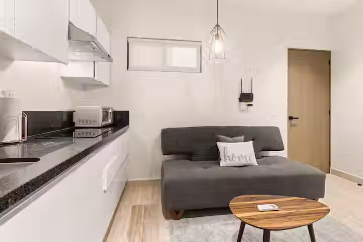 Welcome to our 1 bedroom, 1 bathroom beautiful and comfortable apartment in Playa del Carmen. It has a convenient location and you will find it very easy to get around; it is very close to the ADO bus station, Paseo del Carmen shopping center and the ferry to Cozumel. Just a short 5-minute to the beach & the famous 5th Avenue where you will find all kinds of restaurants, shops, bars, cafes and entertainment. The space This apartment features a living room & kitchen, 1 bedroom, 1 bathroom, the laundry center and a balcony to enjoy the outdoors. You will have access to the communal rooftop where you will find the pool, jacuzzi, gym and rest areas with spectacular views of the Caribbean Sea. We have underground parking, the spaces are not exclusively assigned, so you can park in the space that is available and is the most comfortable for you. Guest access The apartment is located on the third floor. You will have access to all common areas of the building: Pool and jacuzzi with beautiful ocean views Gym Spa (with additional cost) Rest areas Lounge chairs Elevator Underground parking Internet throughout the accommodation Other things to note We have underground parking, the spaces are not exclusively assigned, so you can park in the space that is available and is the most comfortable for you. We offer welcome amenities such as shampoo, conditioner, body wash, hand soap, toilet paper, kleenex, napkins, dish soap, dish sponge. Once they ran out, guests should provide their own. For reservations over 28 days, complimentary cleaning is performed once a week. If you need extra cleaning services we can of course provide them with an extra cost. *Committed to environmental care, we ask you to please make sure that all air conditioners and lights are turned off when leaving the apartment.